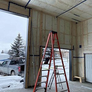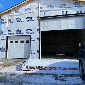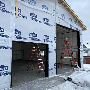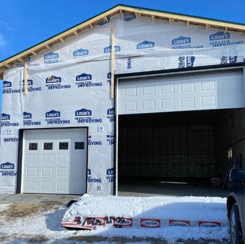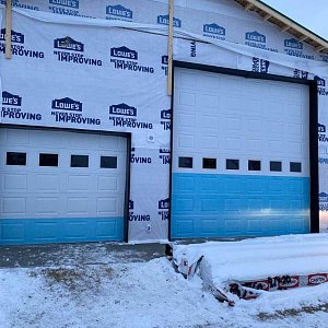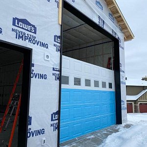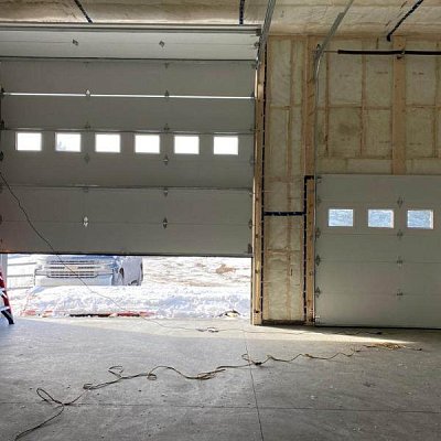Recently, our team of specialists carried out a door installation project in Cochrane. The task was to build in two residential garage doors of different dimensions – 14x14 and 9x8. The choice of doors fell on white sectional doors, as sectional doors allow for extra storage space and are conveniently automated, facilitating the future ease of use and maintenance. Another way of achieving additional functionality was the decision to pick LiftMaster Wall Mounted 8500w openers to lift the doors up and down. Not only this opening mechanism is extra quiet and has a lifetime warranty, it also provides a number of helpful features, including a built-in Wi-Fi, Keyless Entry, Soft Start, etc. Having LiftMaster openers installed, now the client is able to control the garage door and change settings on a mobile device.