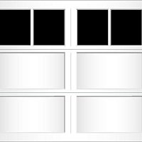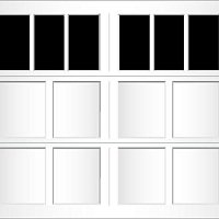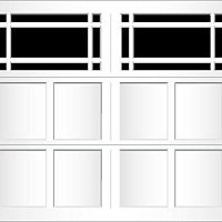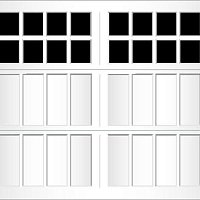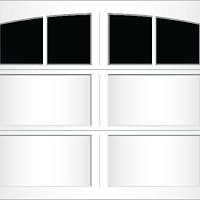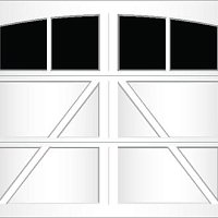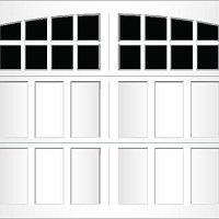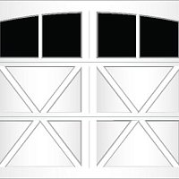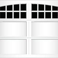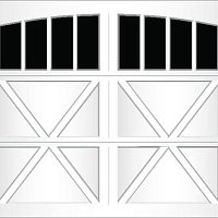 Extruded aluminum construction and trunnion overlays are glued to the door. They can be configured to create a variety of carriage-style designs. We offer seven basic designs, seven standard window models, and six arched window models. Our standard arch has a 15'-0" radius for both single and double car doors. The 58'-0" radius arch is also available on double car doors. Additional custom arches can be made to fit your exact arch or door opening angles if a template is provided. The aluminum finish is applied to the inside of the glass to match the pattern on the outside.